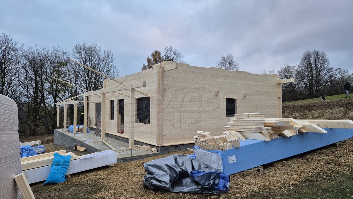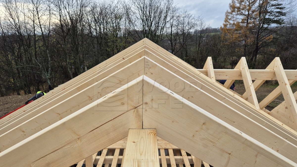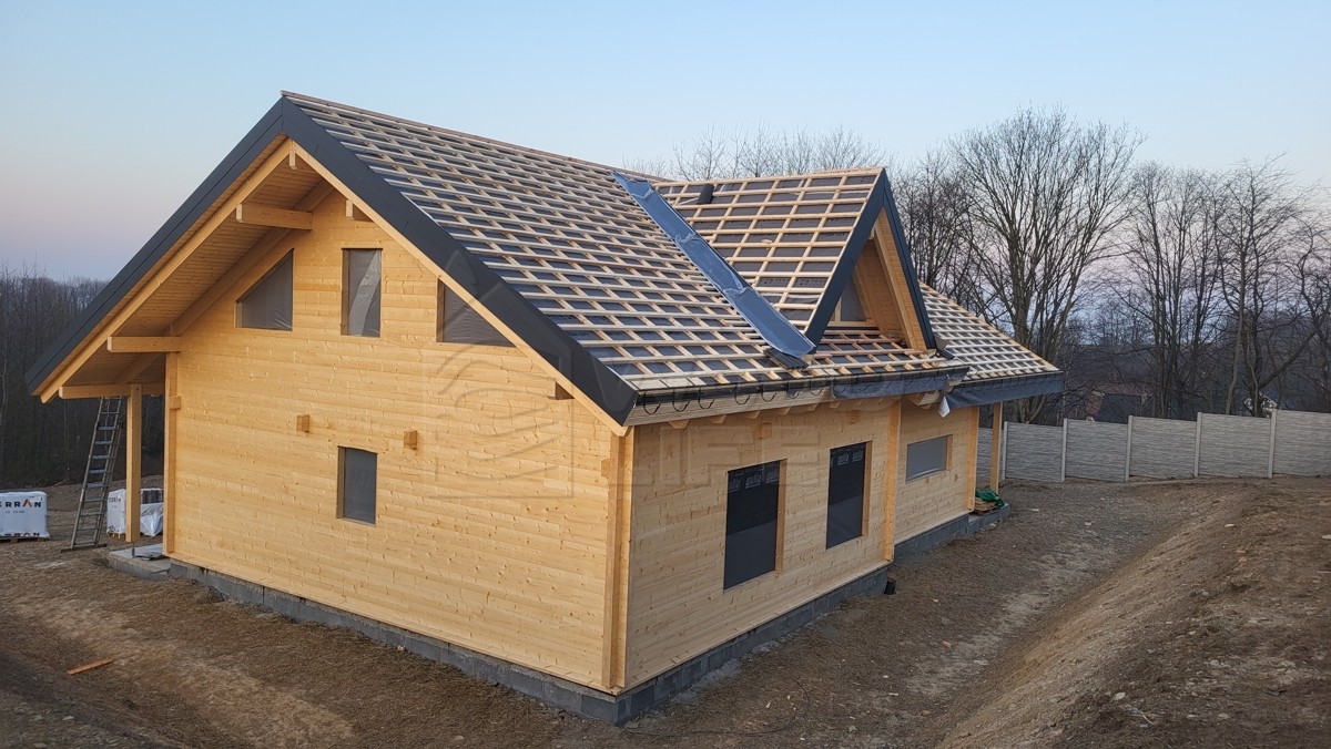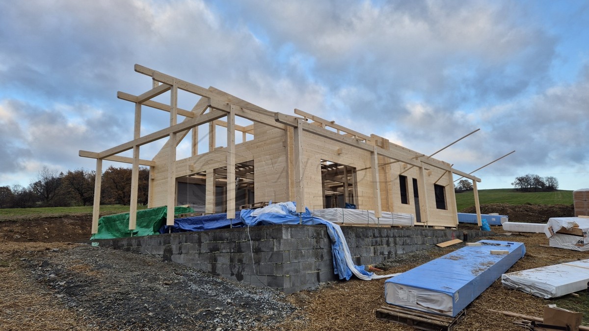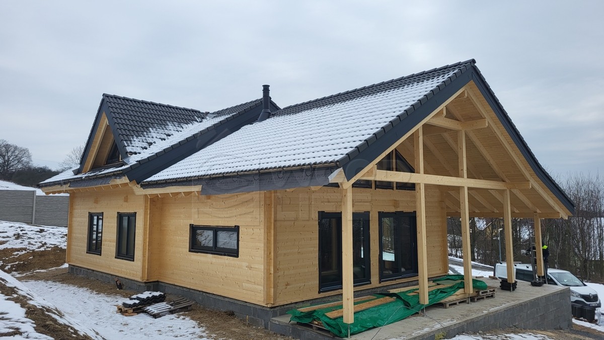 Podkrovní srubový dům SLUNEČNÁ se realizuje v Olomouckém kraji. Srub je postavený na kopci, na konci vesnice s krásným výhledem do okolní krajiny. Srubový dům má část nad kuchyní a obývacím pokojem otevřený do střechy s pohledovými krovy a druhá část srubu je podkroví. Na srub navazuje velká zastřešená terasa ve tvaru písmene L.