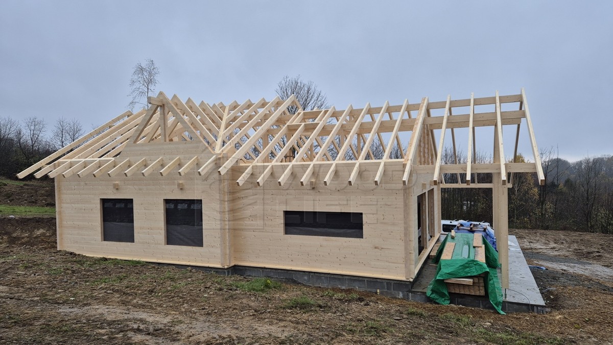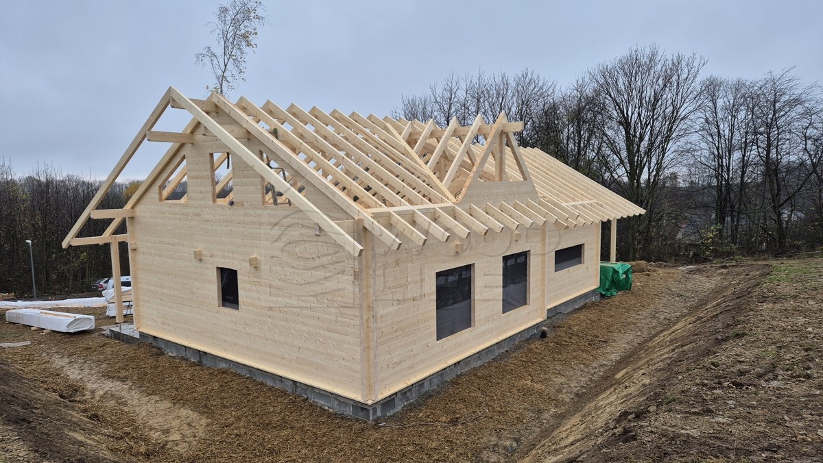 Srubový dům Slunečná V Olomouckém kraji stavíme další srub. Je to podkrovní srubový dům Slunečná.